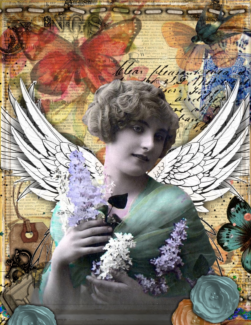 Today I have a free printable collage. It measures 8.5 x 11 and it's 350DPI. I also have two versions of it. I have the first one, which is the original one that I created and saved and the other one is lighter because when you print, some things have a tendency to darken too much.... So it may look "too" light, but when you print it won't be.... Everyone's printer is different along with their settings which is why I am offering two versions. And if you want, at the bottom, are two little "Swatches" which you can test print for color.... This would even make beautiful paper for scrapbooking!