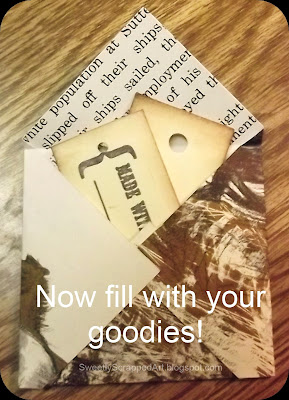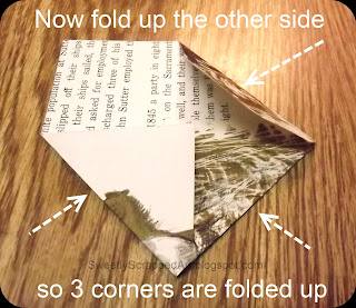 Okay, so I always give a little surprise with all my orders. Currently I am simply adding them inside the tissue paper. Well, I got the nifty idea to make little envelopes to include the freebies in. I wanted to use something "vintag-y" (yes, I made that word up). Soooooo, I took book pages, cut them into 4.5 x 4.5 squares and started folding & gluing! Like I said, forgive the photos :)