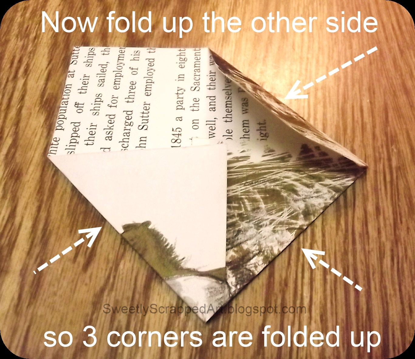 Now fold up the other corner on the same side.....